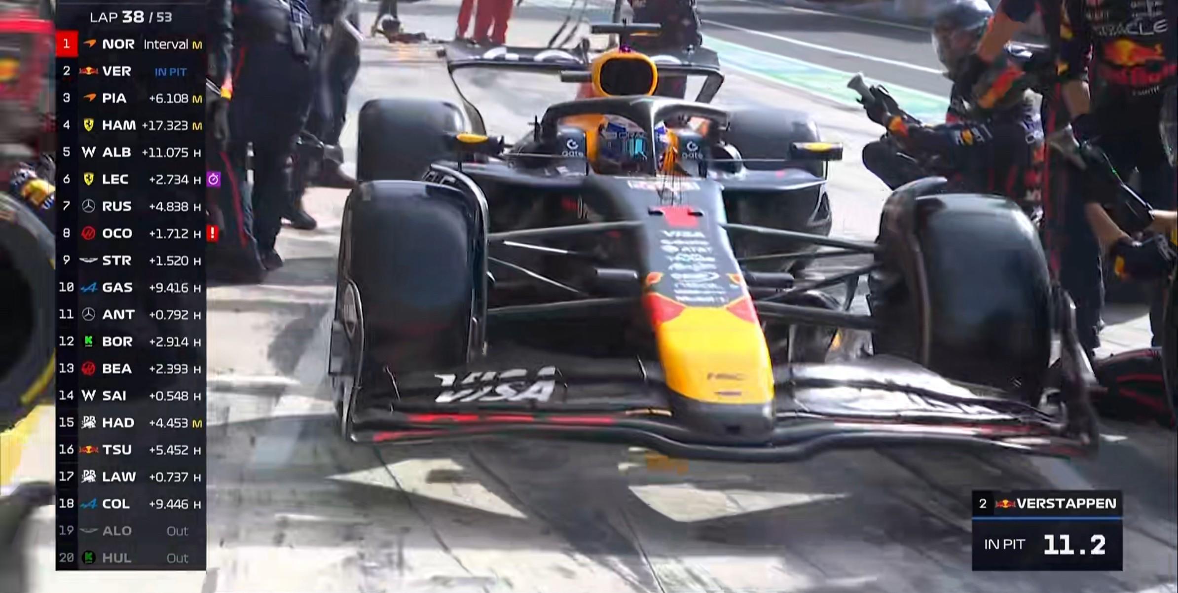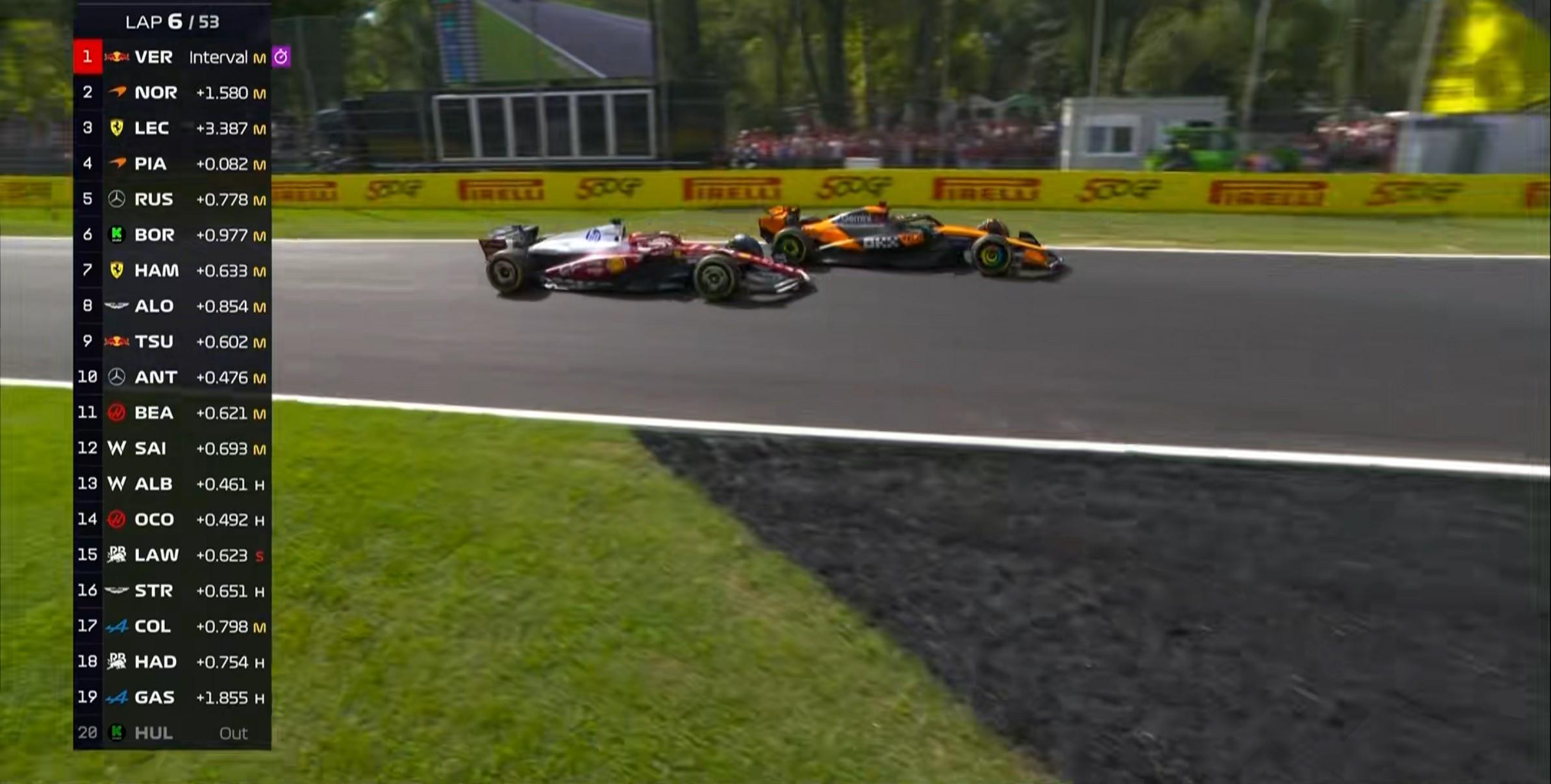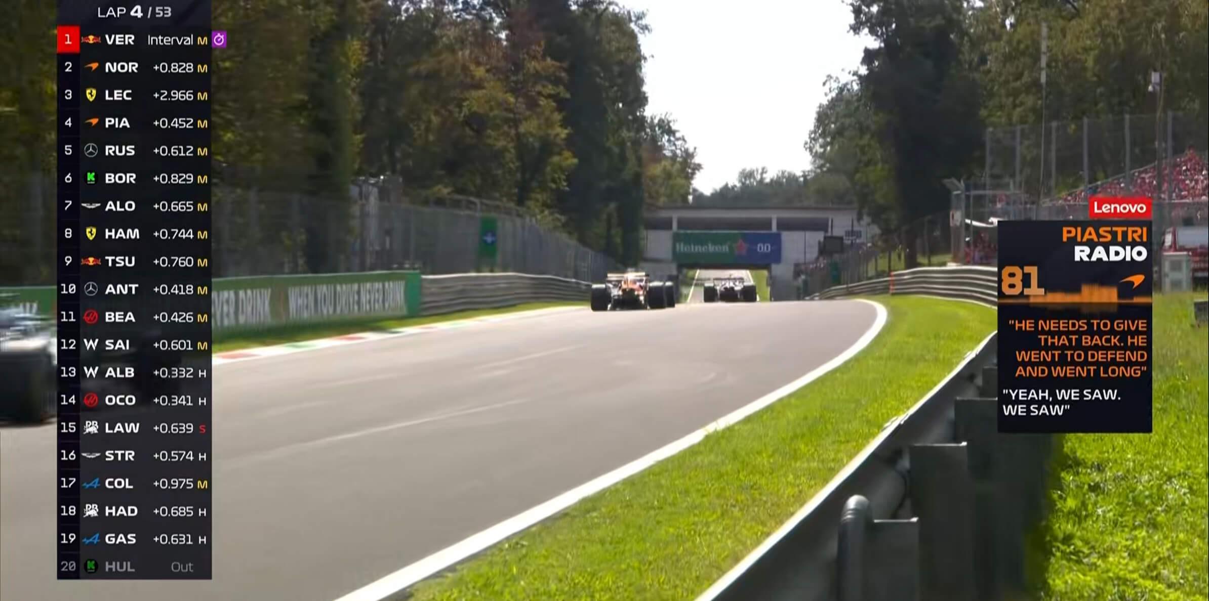 诺里斯在TR中表示维斯塔潘需要归还位置,后者直接切过了2号弯;
