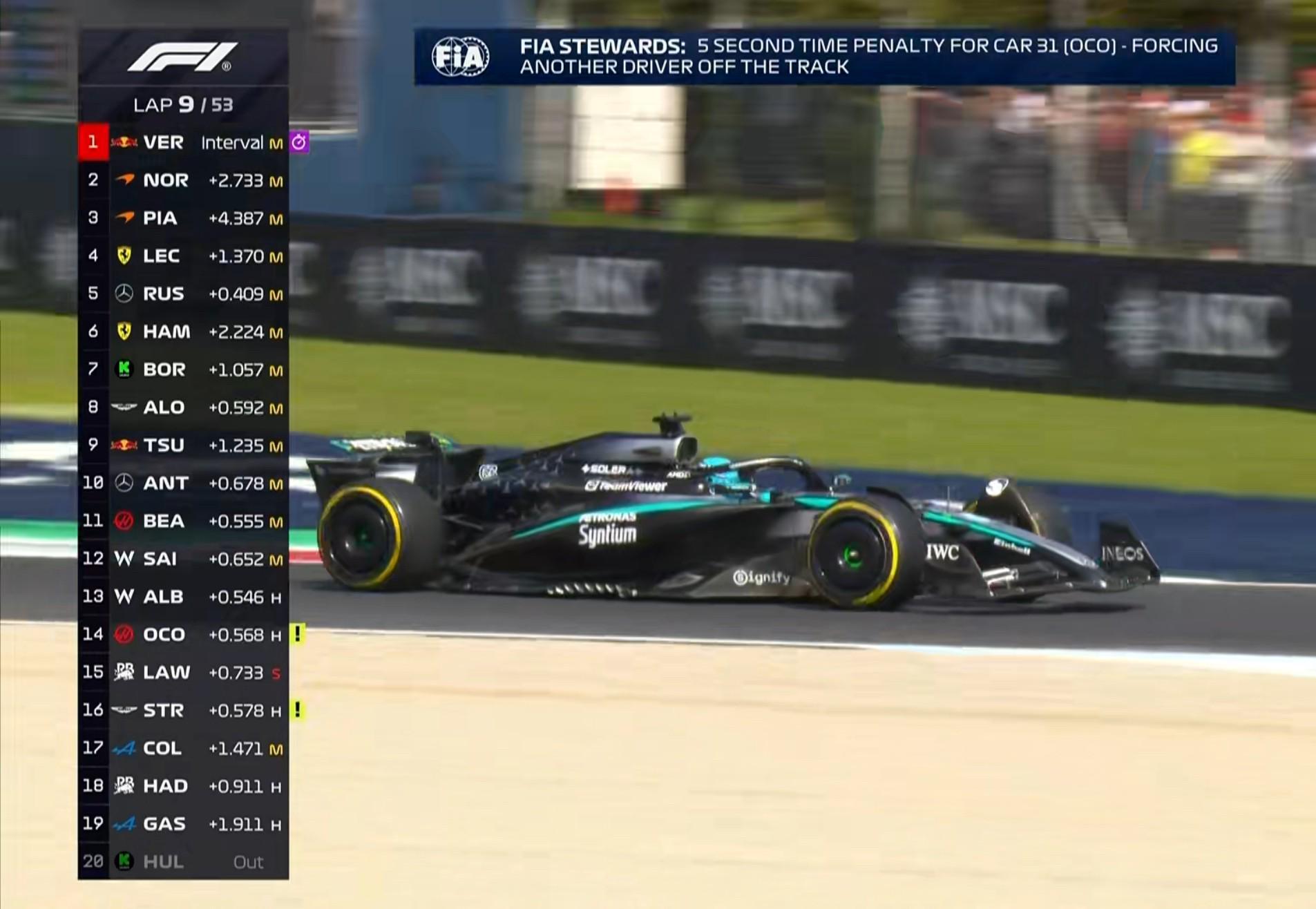 第53圈:安东内利因不安全驾驶被罚时5秒!