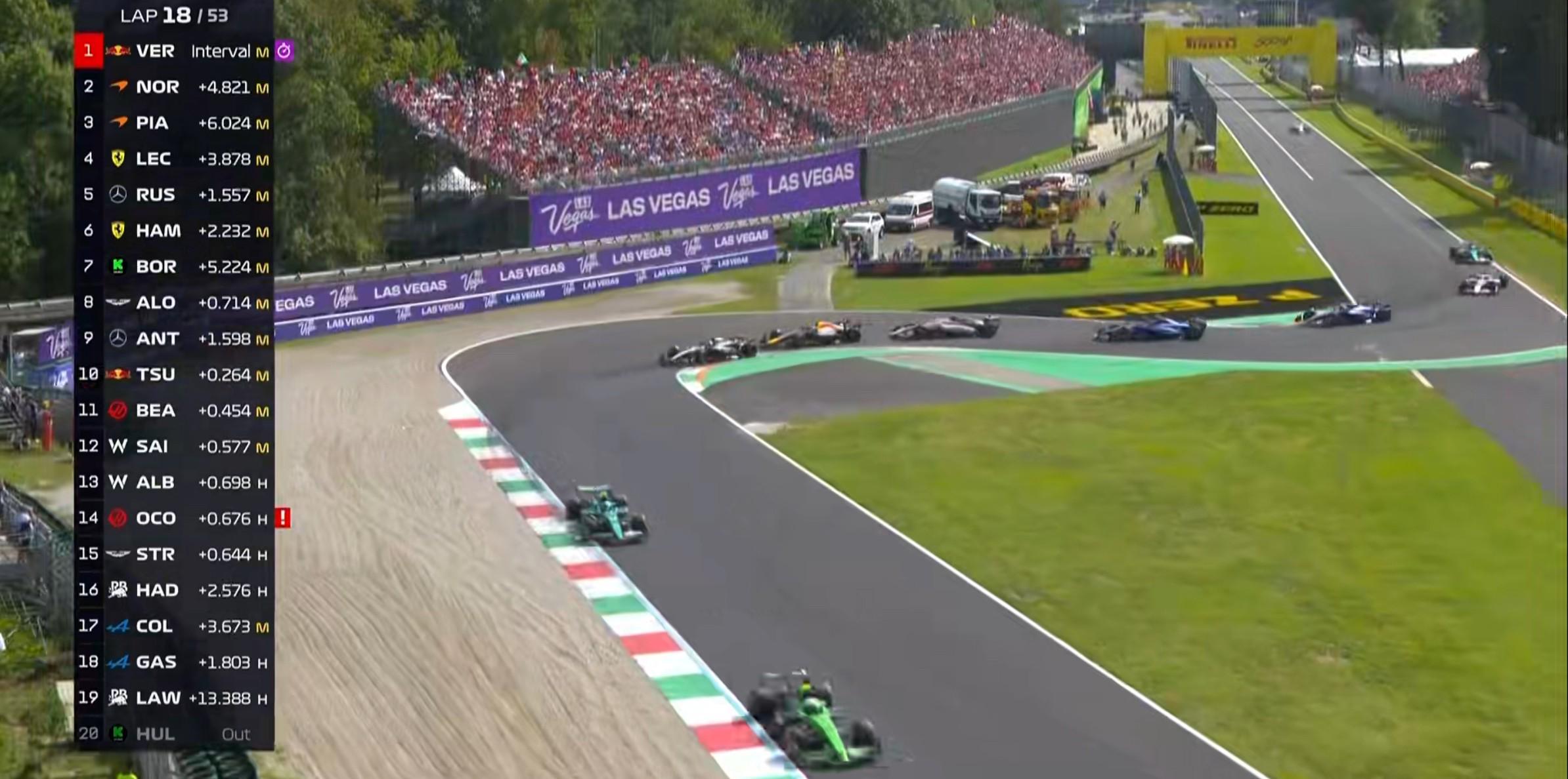 第18圈:安东内利在2号弯前超越角田,上升至第9;