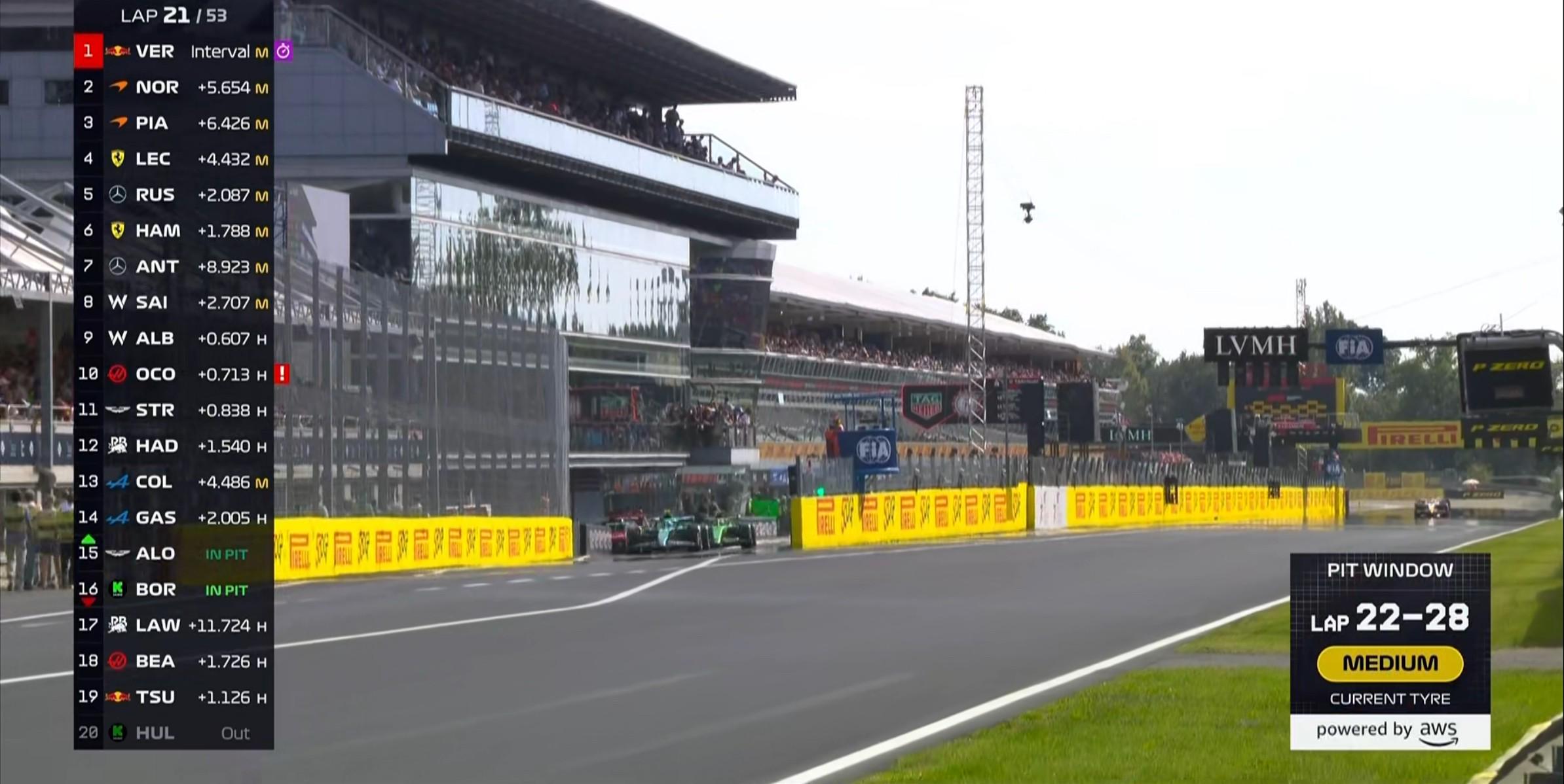 第21圈:早一圈进站的贝尔曼成功undercut角田,上升至第19;