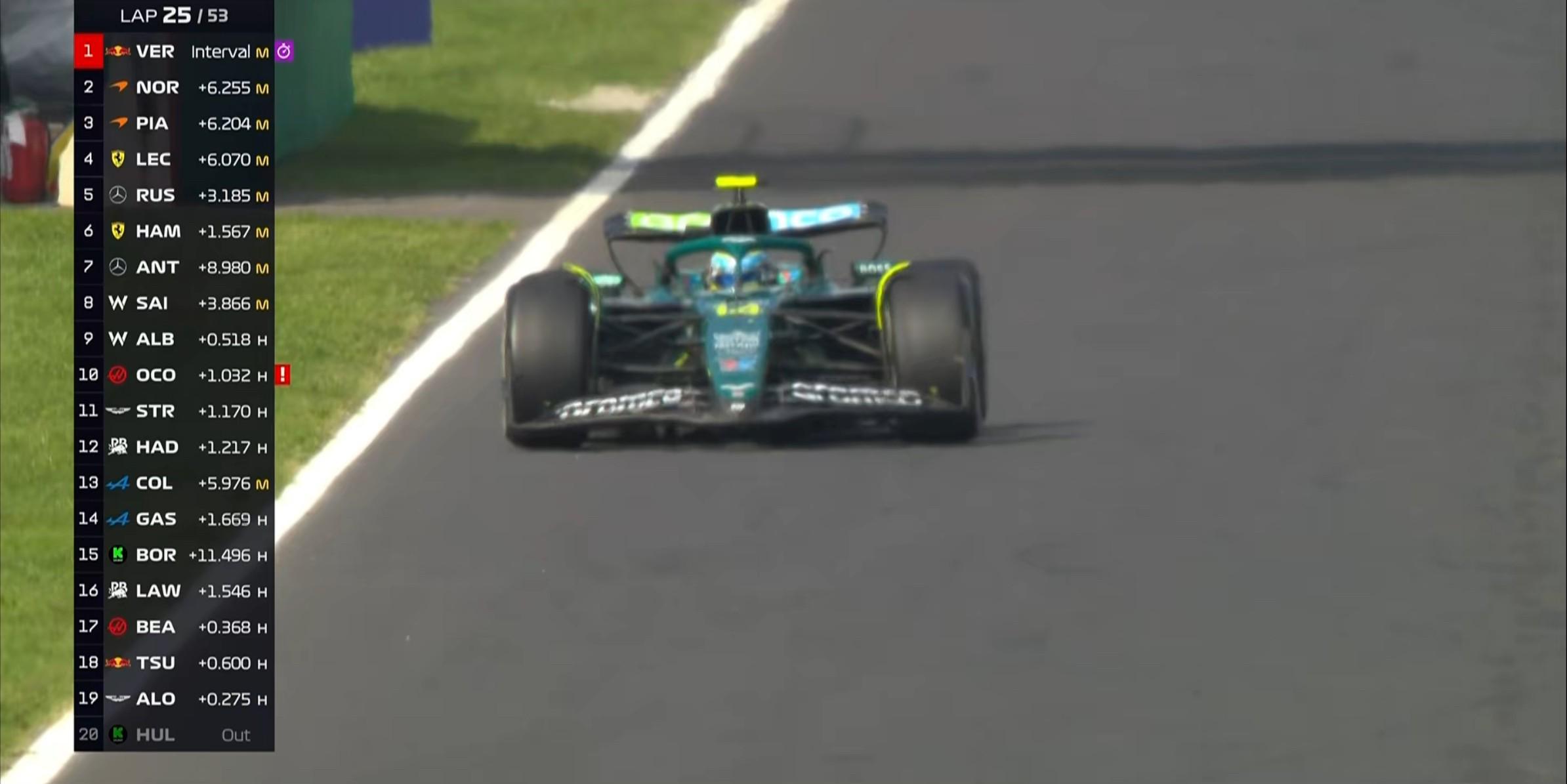 第25圈:阿隆索的赛车在通过阿斯卡里弯后速度突然变慢!
