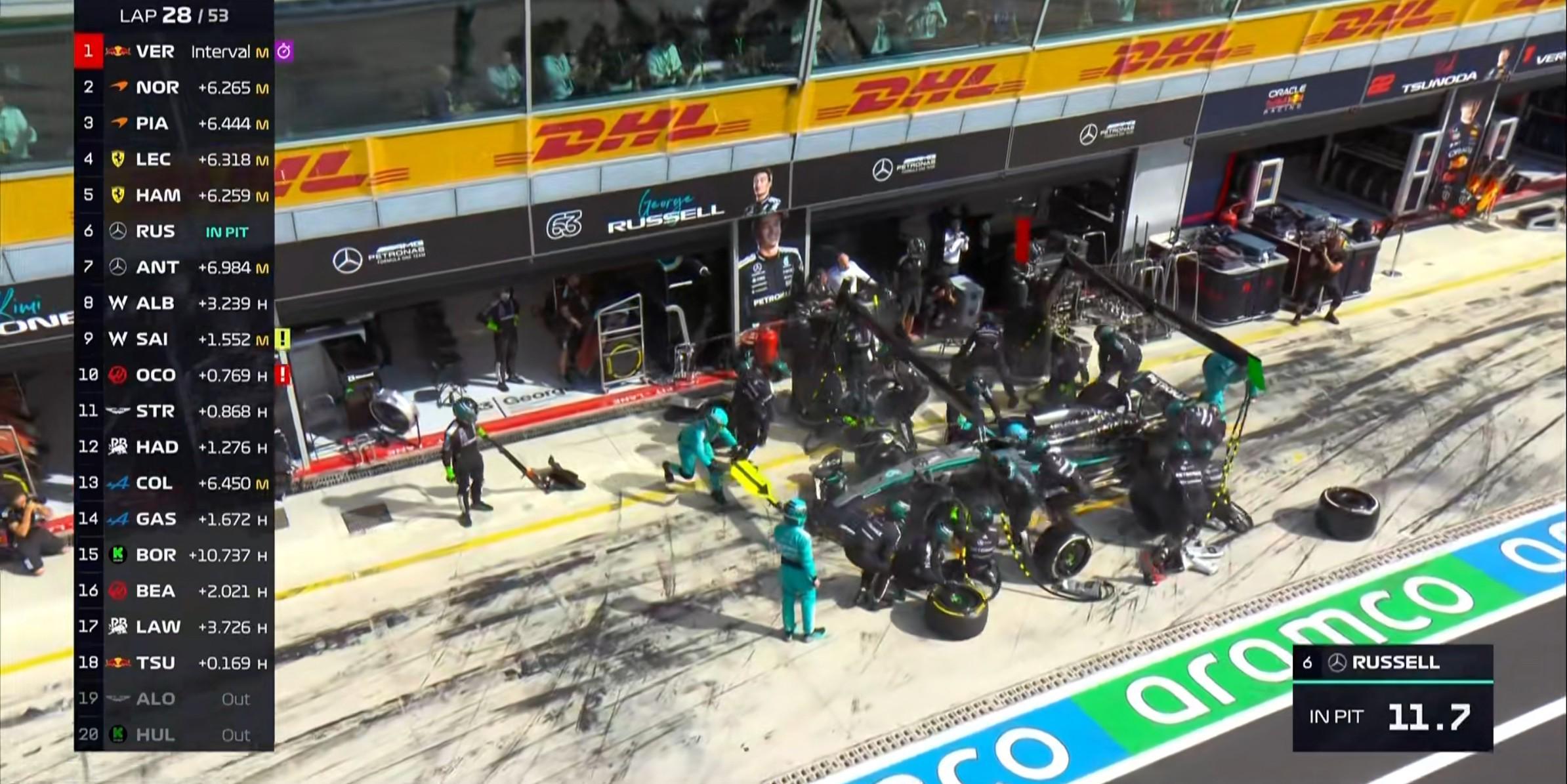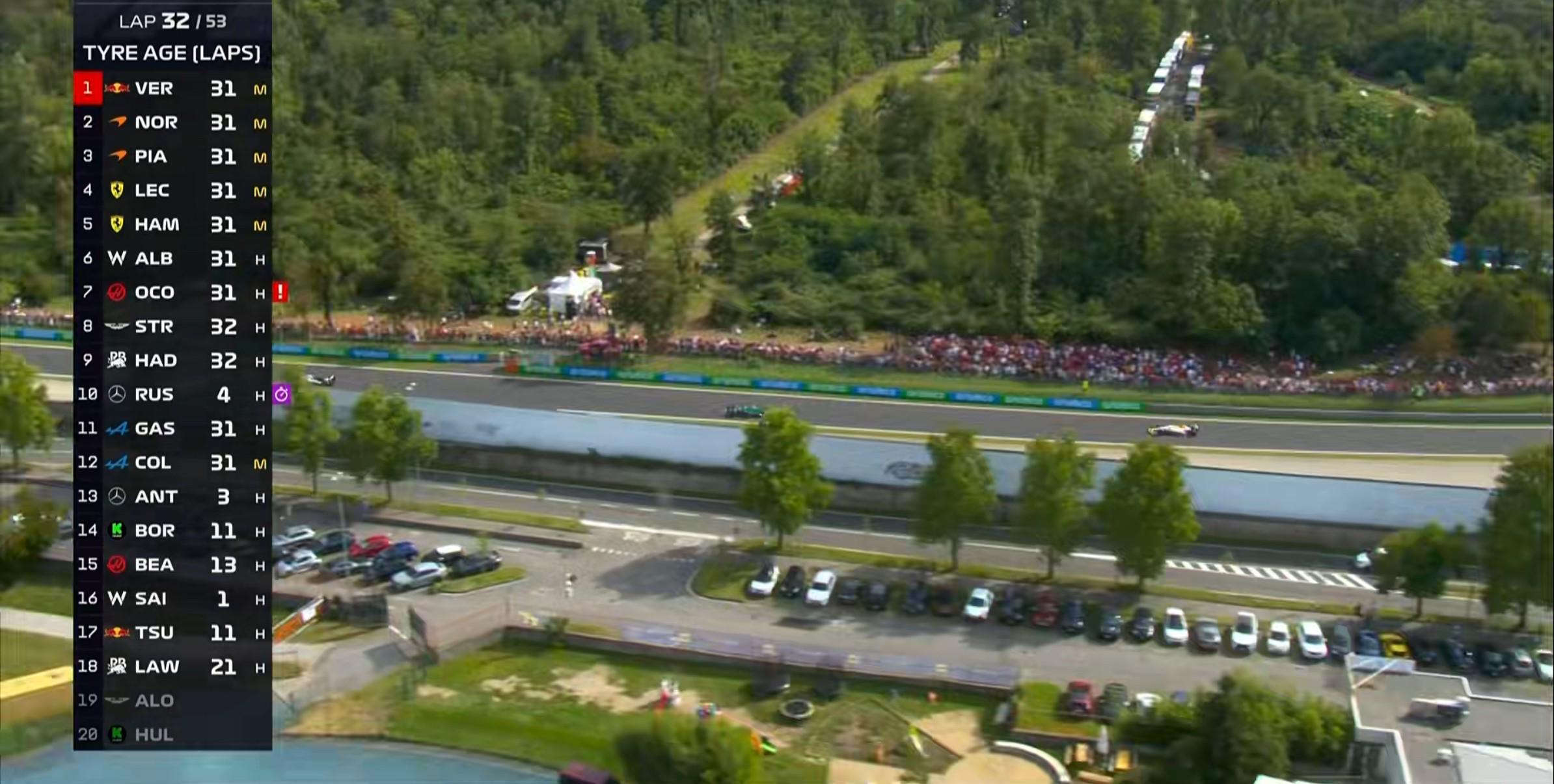 第32圈:多位车手尚未执行一停,领先集团仅梅赛德斯完成进站;