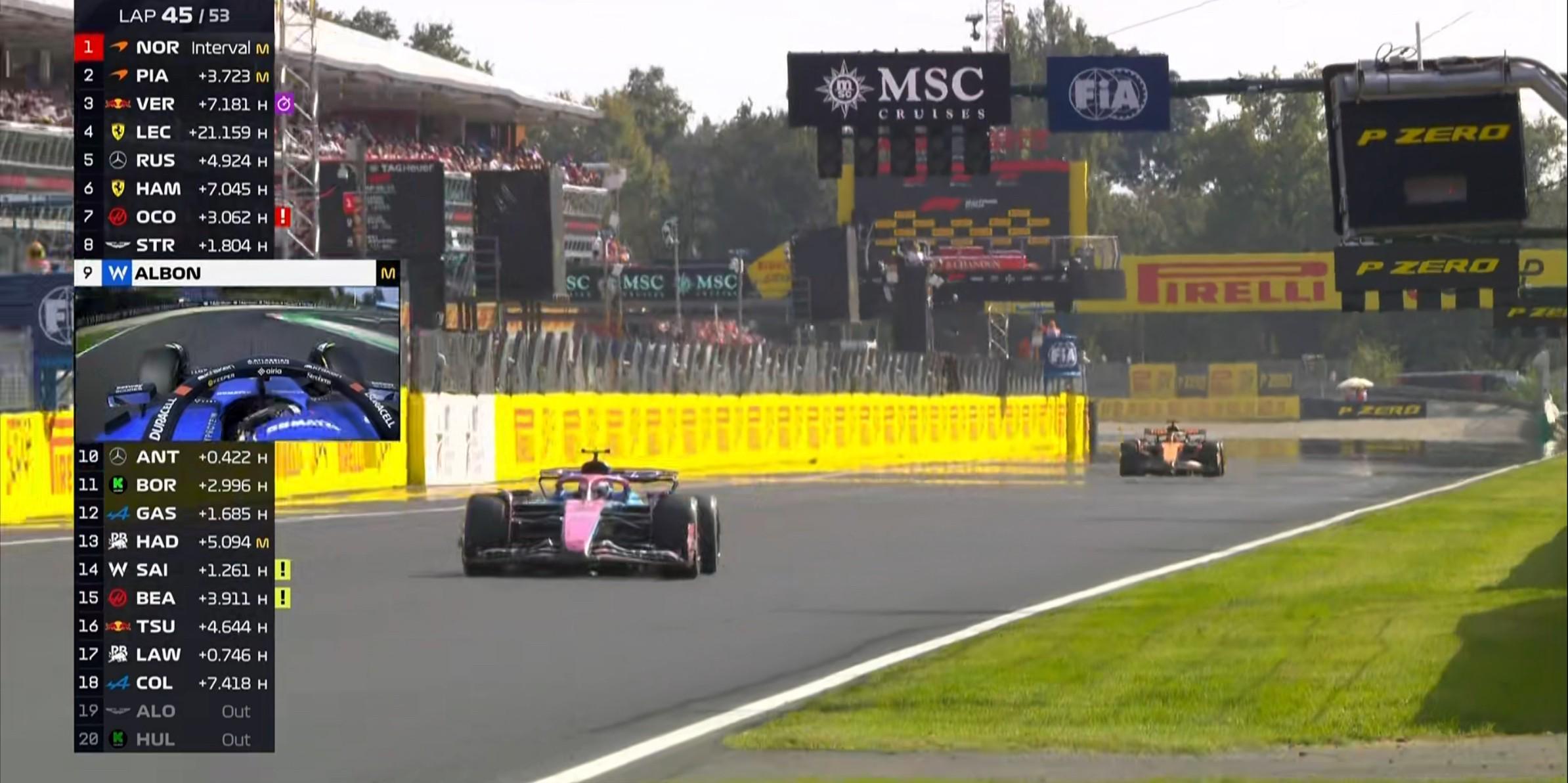 第45圈:阿尔本超越安东内利上升至第9,前方的奥康&斯特罗尔尚未进站;